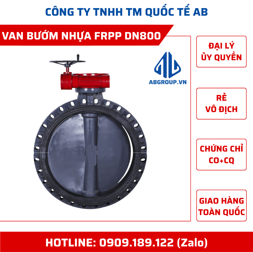 Giá niêm yết sản phẩm van bướm nhựa uPVC DN800 tay quay và các đường kính khác. Đơn giá bán chính xác được báo theo số lượng cụ thể, quý khách hàng vui lòng liên hệ 0909189122 (zalo) để có thể mua hàng giá rẻ nhất.