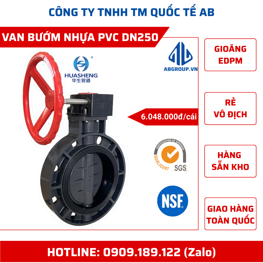 Giá niêm yết sản phẩm van bướm nhựa uPVC DN250 tay quay và các đường kính khác. Đơn giá bán chính xác được báo theo số lượng cụ thể, quý khách hàng vui lòng liên hệ 0909189122 (zalo) để có thể mua hàng giá rẻ nhất.